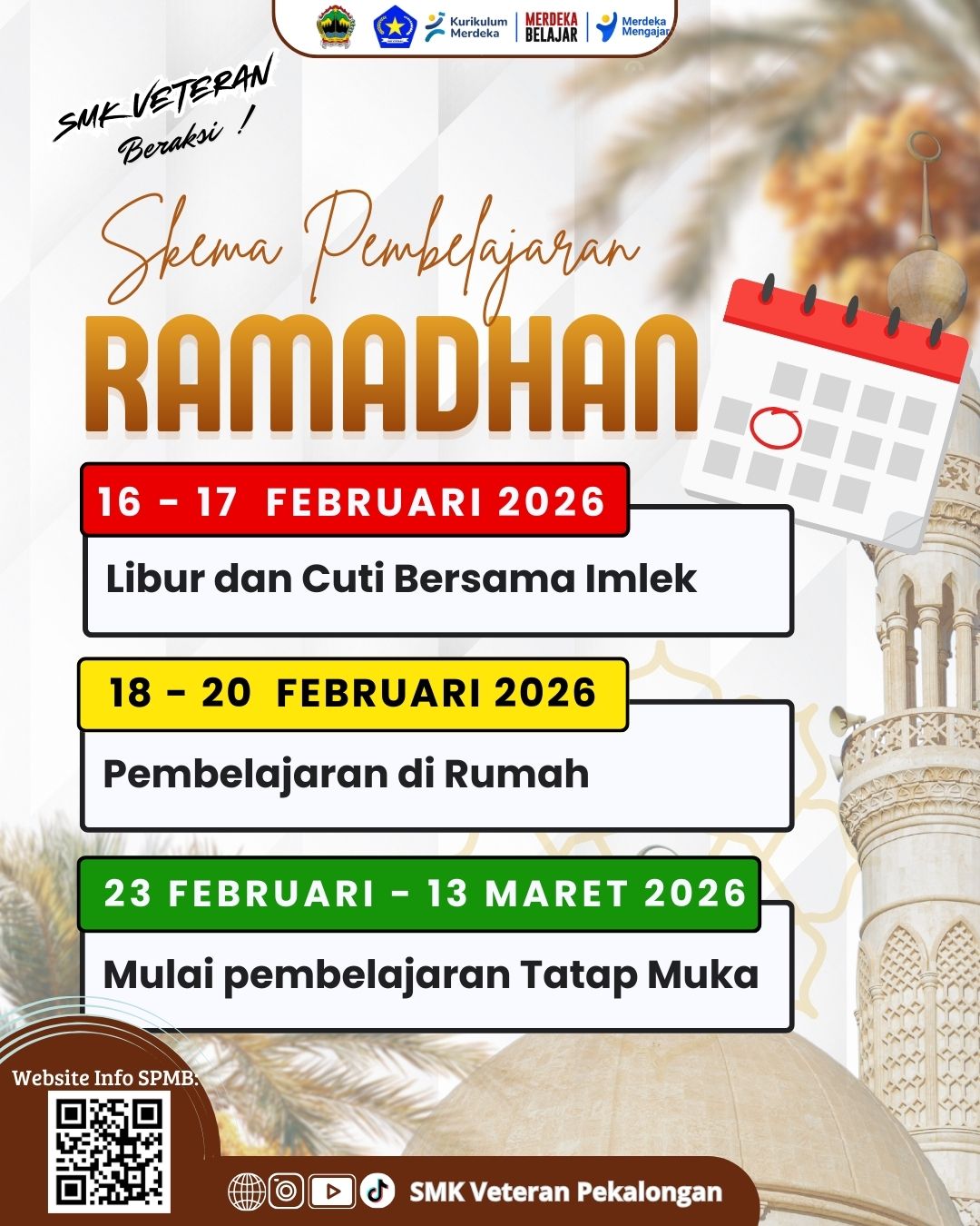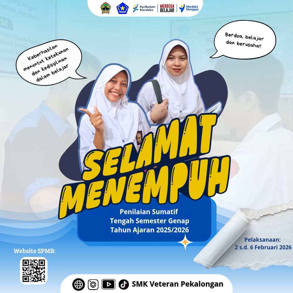 SMK Veteran Pekalongan Membentuk Siswanya mempunyai Karakter yang Berkahlak Mulia, Aktif, Kreatif, Sportif, dan Inovatif. Kami menekankan pendidikan yang lulusannya siap untuk bekerja atau melanjutkan ke jenjang pendidikan yang lebih tinggi.